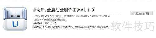 1、 首先,下载U大师U盘启动盘制作工具V1.1.0版本。