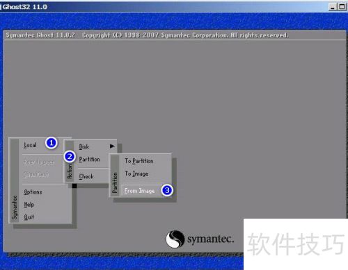 4、 进入后,选择要还原的GHO文件,按顺序从菜单选择:Local→Partition→FromImage。