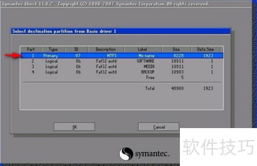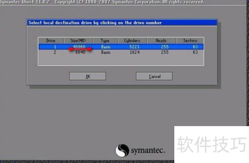 6、 接下来,需选择将系统还原到哪个硬盘。一般应选空间较大的,那是正确选项;空间小的通常是U盘,别选错。