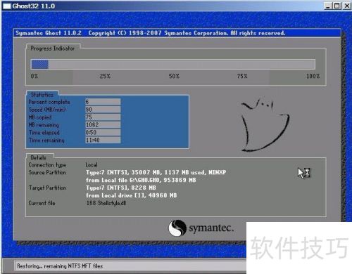 8、 正确选择后,将进入系统安装还原阶段,全程约30分钟,请耐心等候。