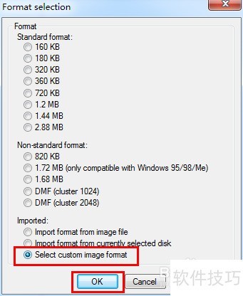 4、 运行Winima80程序后,点击文件→新建,在格式设置窗口选择自定义格式。