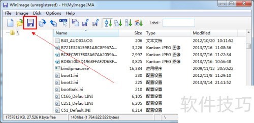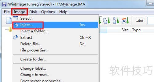 6、 接下来,点击Image→Inject选项,添加文件直至填满,最后点击保存。