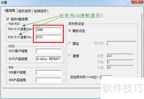 12、 若识别异常,可在程序主界面点击设定,手动指定正确的PID和VID信息以完成设置。