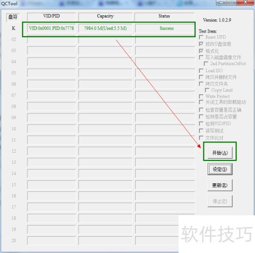 13、 U盘成功识别后,直接点击开始按钮即可量产。