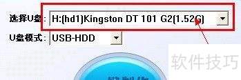 2、 在选择U盘下拉列表里,挑选需要还原的U盘盘符,参照图示。