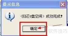 4、 自动格式化完毕后,会弹出提示框,点击确定,U盘还原即完成,所示。