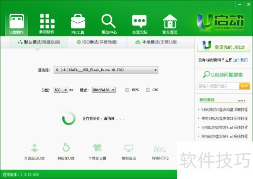 2、 开始快速将U盘格式化,恢复为普通存储设备。
