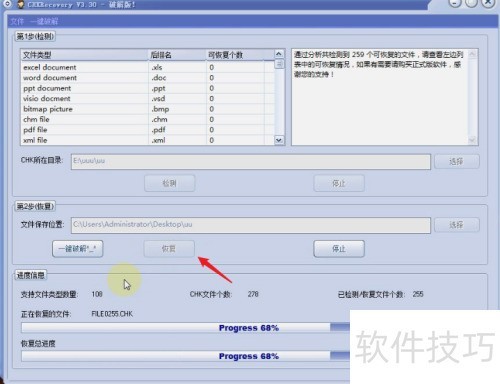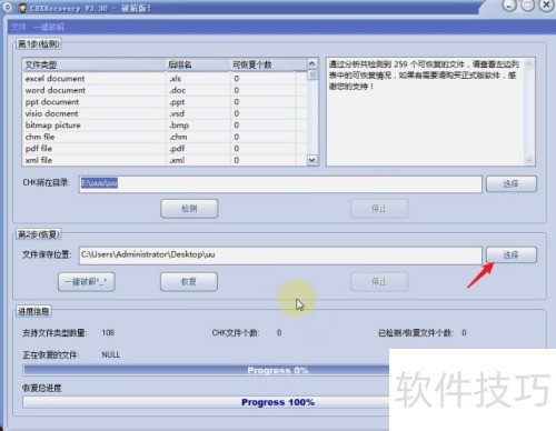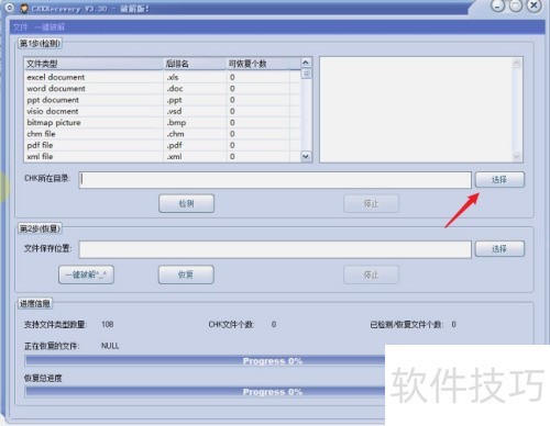 7、 先复制所有CHK文件,然后打开CHK修复工具,点击选择按钮,指定CHK文件的存放路径。