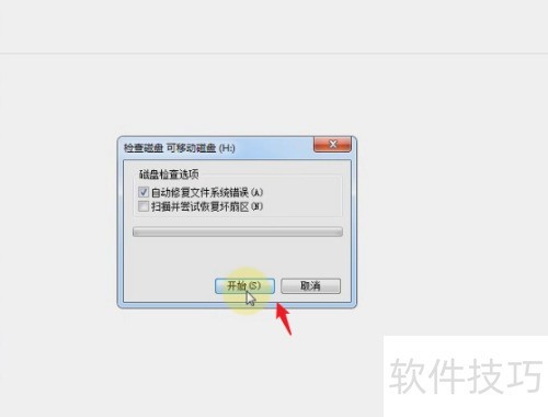 4、 选中自动修复文件系统错误,点击开始按钮,耐心等待修复完成。