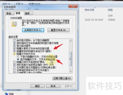 5、 在工具菜单的文件选项里,取消隐藏受保护的系统文件,勾选显示隐藏的文件、文件夹和驱动器。