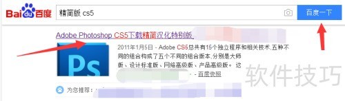 1、 首先需要一个浏览器,通过百度搜索精简版cs5,进入相关网页。