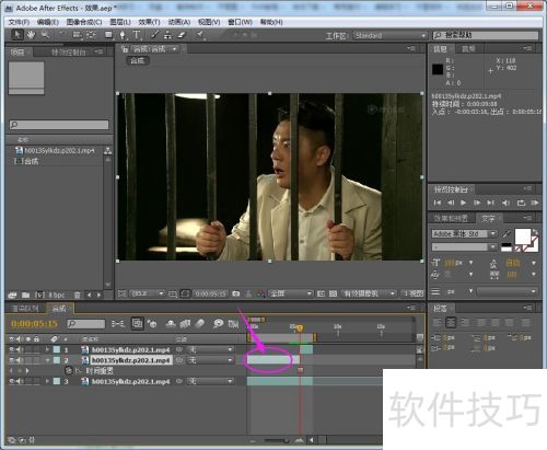 1、 先启动AE软件,然后在时间轴上添加待处理的视频素材。