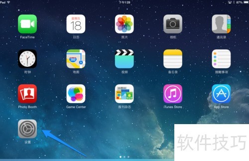 1、 首先点击主屏的设置应用,这里以iPad为例进行说明。