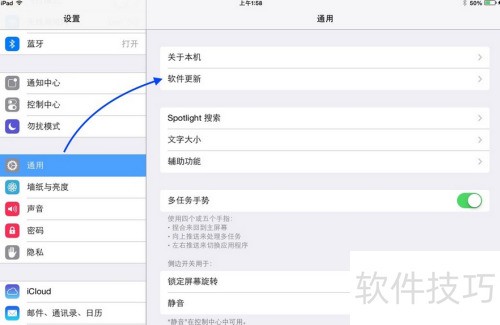 2、 接着,进入设置里的通用选项,于右侧窗口查找并点击软件更新。