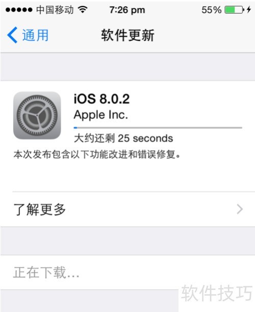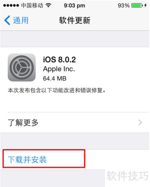 4、 按照更新提示操作,即可顺利将iOS系统升级到8.0.2最新版本,这种方法简单易行,所示。