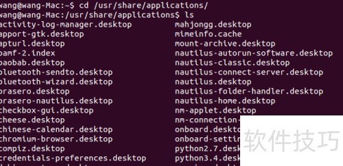 2、 进入/usr/share/applications目录,运行ls -l命令查看文件列表,会发现这些文件都以.desktop为后缀,它们的作用类似于Windows系统中的快捷方式。