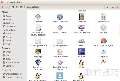 13、 编辑后,在/usr/share/applications/文件夹中生成了Eclipse快捷方式,可通过文件管理器查看。