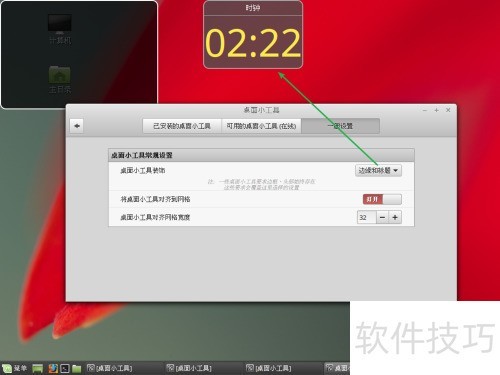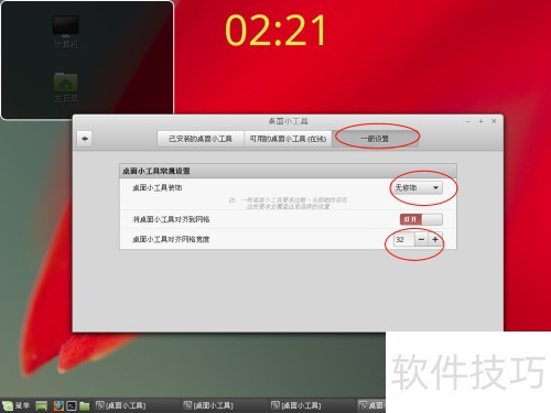 6、 常规设置:点击图一的常规选项,可在桌面小工具装饰中调整样式,比二、图三展示的时钟样式。此功能仅对部分小工具生效。通过对齐网格功能,可方便地排列和对齐小工具,同时支持直接拖动小工具调整位置。