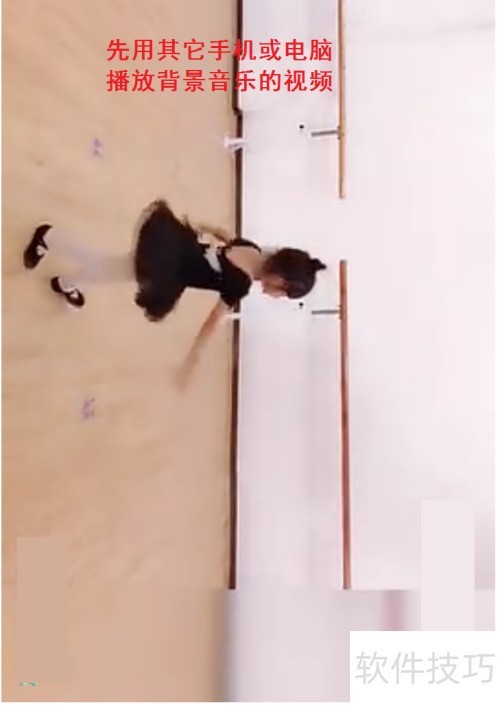 1、 先用手机添加视频背景音乐,若无音乐,可用带外放的电脑播放视频代替。