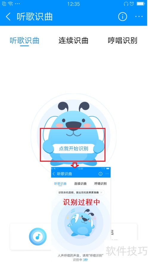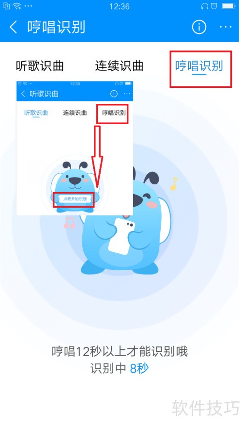 9、 点击开始识别,建议识别歌曲时长超过12秒效果更佳。