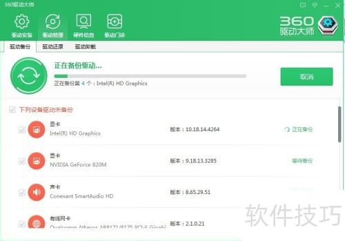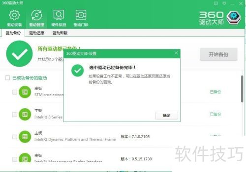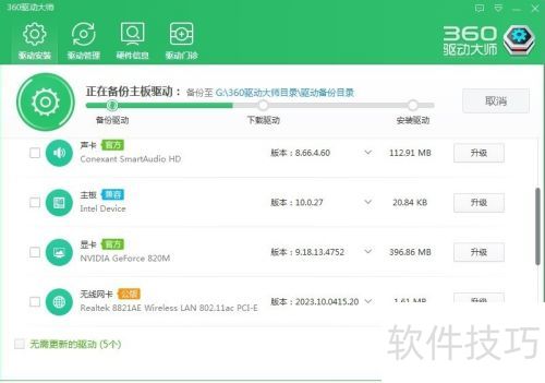 8、 更新前,软件会自动备份原有驱动,以防万一。驱动并非越新越好,匹配才重要,最新版本可能造成不稳定。