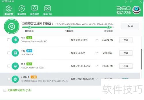 6、 除了有线网卡,笔记本通常自带无线网卡。更新无线网卡驱动可连接无线网络,同时也能更新其他设备的驱动程序。