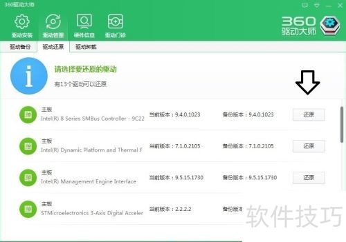 14、 驱动还原:更新后异常时可进行系统还原。