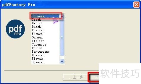 2、 软件解压完成后,会显示此界面,请先选择语言,然后点击下一步继续操作。