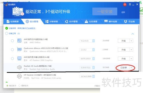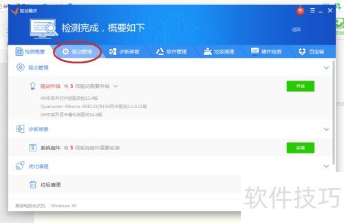 4、 检测结束后,点击驱动管理,即可找到声卡下载安装选...