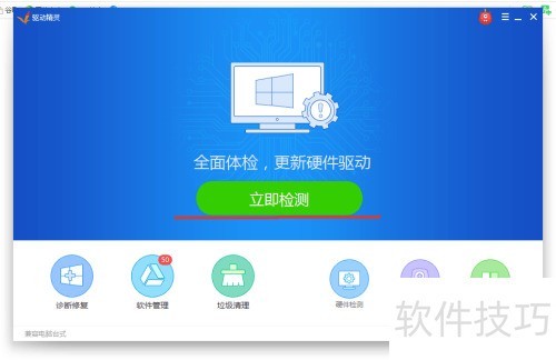 2、 安装完毕后,开启驱动精灵,即可看到立即检测选项。