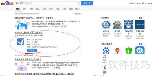 1、 先在百度搜索驱动精灵,然后找到该软件并下载安装。
