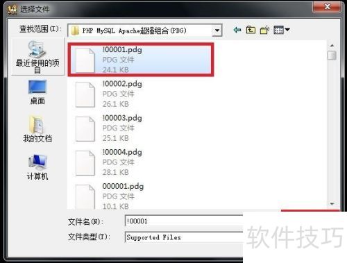 3、 找到PDG格式文件所在的文件夹,任意选择一页文件,然后单击打开按钮即可。