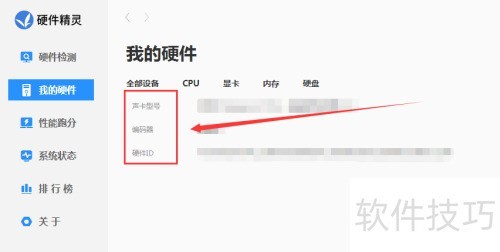 3、 第三步,进入检测页面,依次点击我的硬件、全部设...