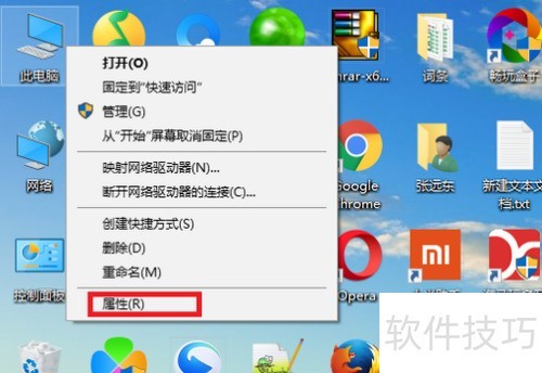 1、 打开电脑桌面,右键点击此电脑,然后选择属性。