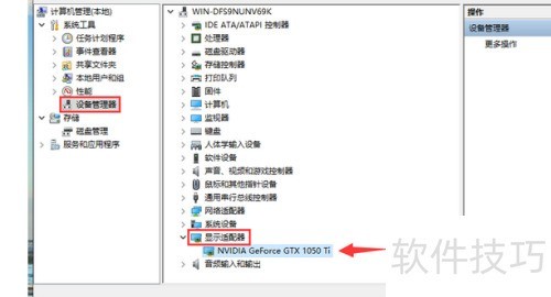 2、 左侧有设备管理器,点开后找到显示适配器,展开并双击显卡,即可打开属性窗口。