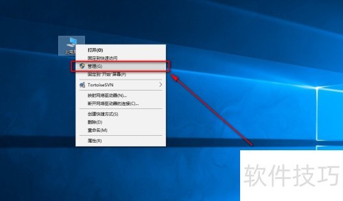 1、 在桌面上右键点击此电脑,选择管理。