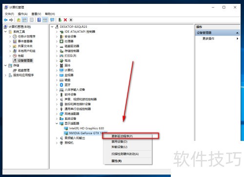 5、 右击显卡,选择更新驱动程序。