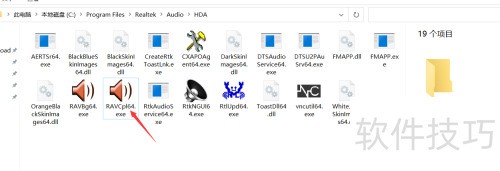 4、 看到那两个图标,是否感到热泪盈眶?尝试双击RAVCpl64.exe文件,这将开启Realtek高清晰音频管理器,体验熟悉的功能。