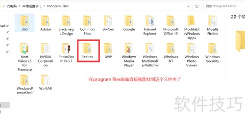 6、 其实,作者起初是因为不清楚Realtek装在哪儿才去搜索的。没必要这么复杂,驱动一般都在C盘,直接打开C:Program Files,定位到Realtek文件夹即可。接着逐步展开文件夹,最终就能找到RAVCpl64.exe这个文件。