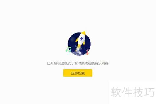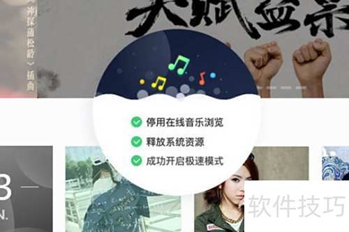 3、 只需等待数秒,系统将自动关闭在线音乐浏览功能并释放资源,当成功启用极速模式的提示出现时,即表示已进入极速模式,具体效果所示。...