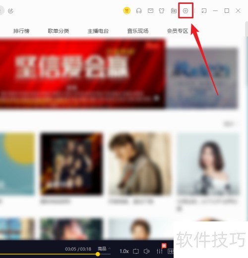 1、 在酷我音乐右上角,点击六边形图标按钮,所示。