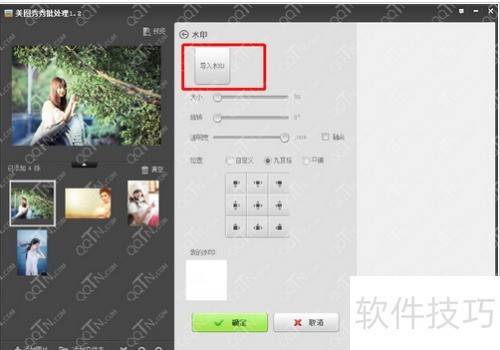 7、 导入后可按需求调节水印的大小、透明度及位置。