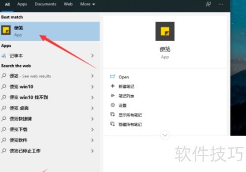 1、 点击任务栏搜索打开便笺软件