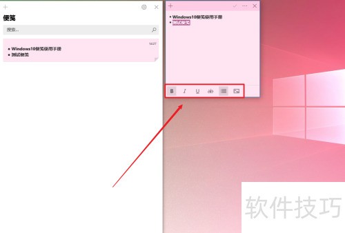 3、 添加后桌面将弹出便笺窗口,可在其中输入需记录的信息。