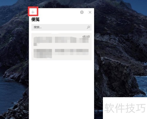 3、 在桌面便笺界面左上角点击添加按钮,创建新的空白便笺。