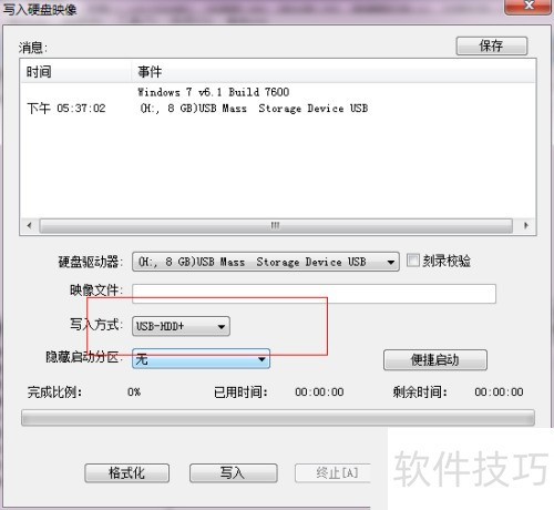 2、 在使用软碟通写入硬盘映像时,会弹出写入方式选择界面。所示,软碟通默认采用USB-HDD+模式进行写入,该模式属于HDD格式,用户可根据需要在此界面中进行选择和设置,确保写入过程符合设备要求。
