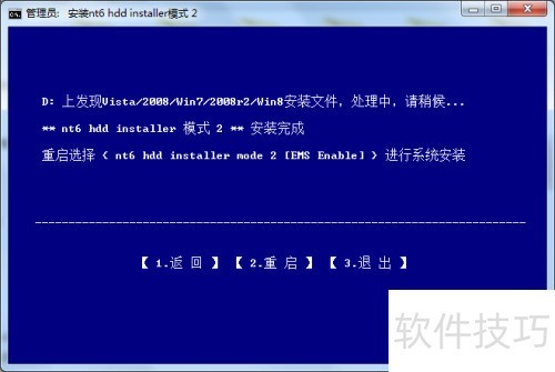 4、 系统默认推荐模式2,因此我选择了该模式并开始安装,整个过程迅速完成。安装结束后,界面提示出现,此时只需点击选项2,即可重启电脑。
