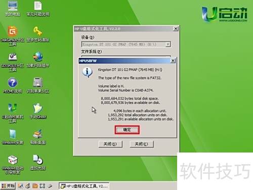 5、 等待工具完成U盘格式化,完成后将弹出提示窗口,点击确定返回主界面,操作完成。