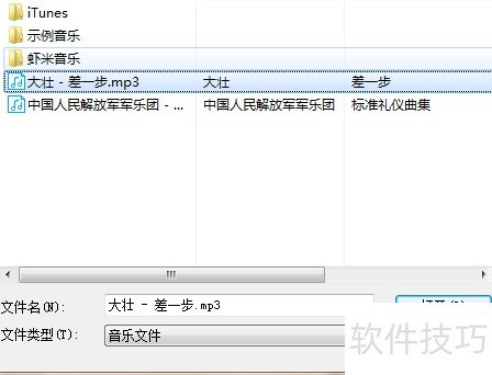 5、 选择所需歌曲并点击打开,操作所示。