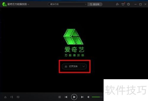 2、 启动电脑中的爱奇艺万能播放器,进入主界面后点击打开按钮即可。